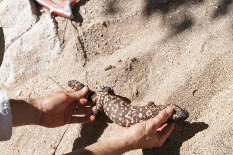 “Herps” being short for “herpetofauna,” (think “herpetology,” or study of reptiles) not “herpes.” Did you know the push-ups lizards do are a display of their brilliant chest color to intimidate other males away from their territory? The gila monster was the only venomous reptile we have caught so far (do NOT try that at home – Kevin’s a professional).