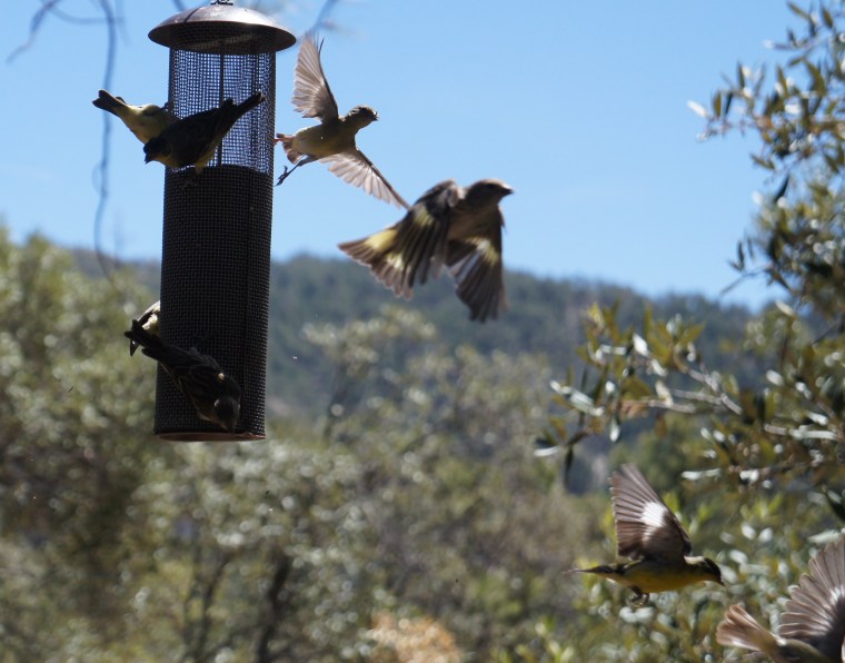 Fortunately, we had a chance to look for other birds, too. At a lovely Desert Museum docent’s cabin, I compared the behavior of hummingbirds (Anna’s, broad tailed, and magnificent) at sugar-laced feeders, where the females chased the males away, to the behavior at the sugar-laced mammal-feeder (a cookie jar), where our little field course tribe shared resources much more amicably. Over the last 24 hours on Mount Lemmon, we also watched Mexican jays weigh peanuts to decide which were likely the