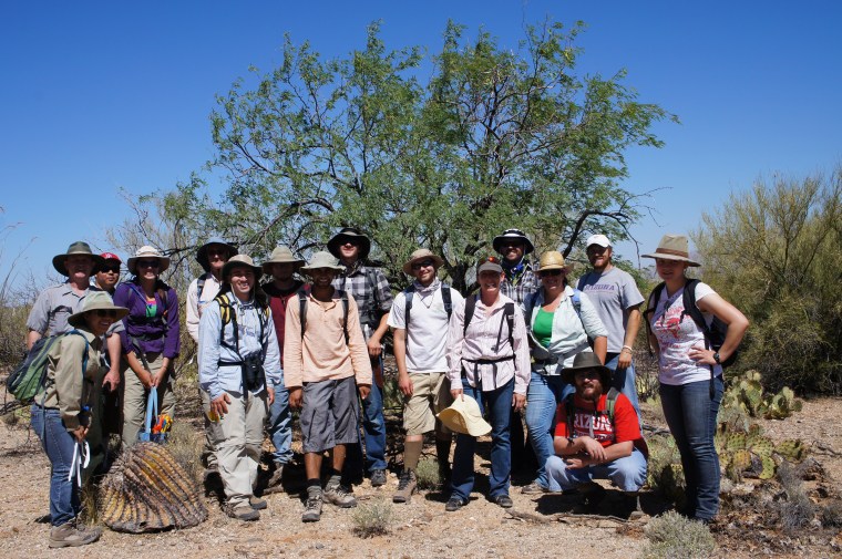 Yeah, after a week without showers in the Sonoran Desert region (even based on a sky island), all our bodies smell not so heavenly. Especially with 14 of us in one van whose air conditioning is, well, Sonoran Desert-ish? On a recent stop through Tucson to eat lunch after censusing saguaros at a national park, a student we’ll call Nine Toes (see previous post about needing some wilderness medicine skills) mentioned how nice and flowery our waitress smelled, and we mentioned how creepy it might seem for him to walk around sniffing waitresses. But we secretly all knew what he meant.