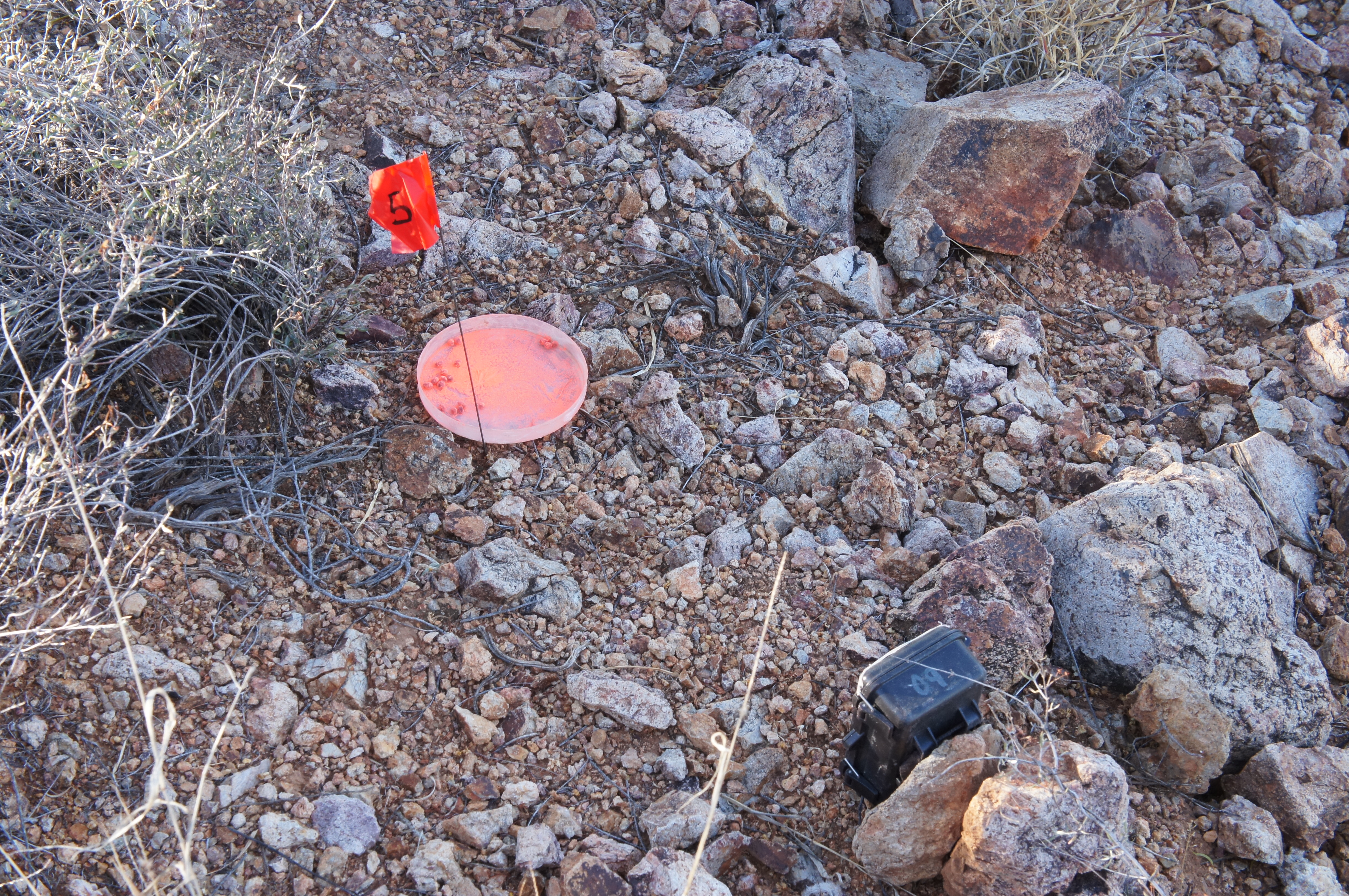 To test this hypothesis, I left fluorescent-dusted seeds on fluorescent-dusted trays in the desert to see where mice would take the seeds, planning to return tonight with UV flashlights to follow their luminous footsteps. It felt like leaving sunset offerings to the tiny, dancing desert gods.